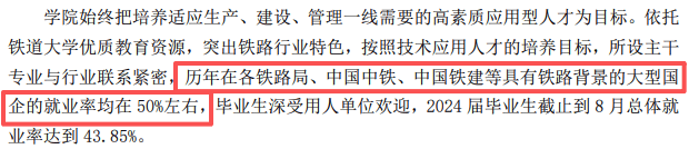 学校发布的最新的就业数据显示:历届结业生正在各铁局、中国铁建、中国中铁等具有铁布景的大型国企的就业率均正在50%摆布!
